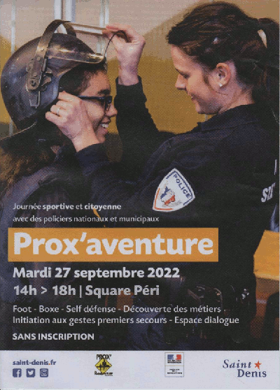 Vendredi 23/09: Un flyer dans les carnets présente une « journée sportive et citoyenne » avec des policiers.